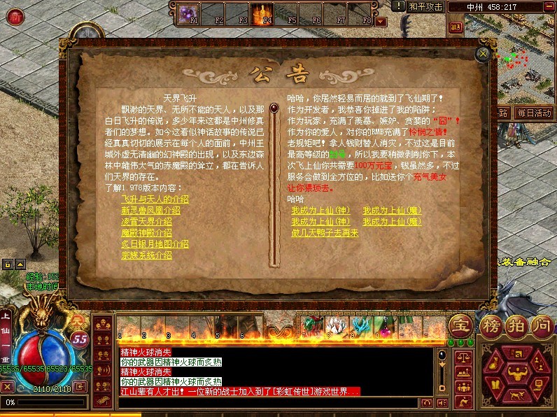 本服务器为独家修正版,为了大家能正常游戏请更新到1.998以上版本,祝大家游戏愉快