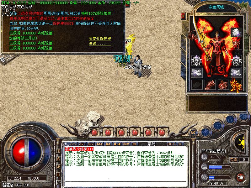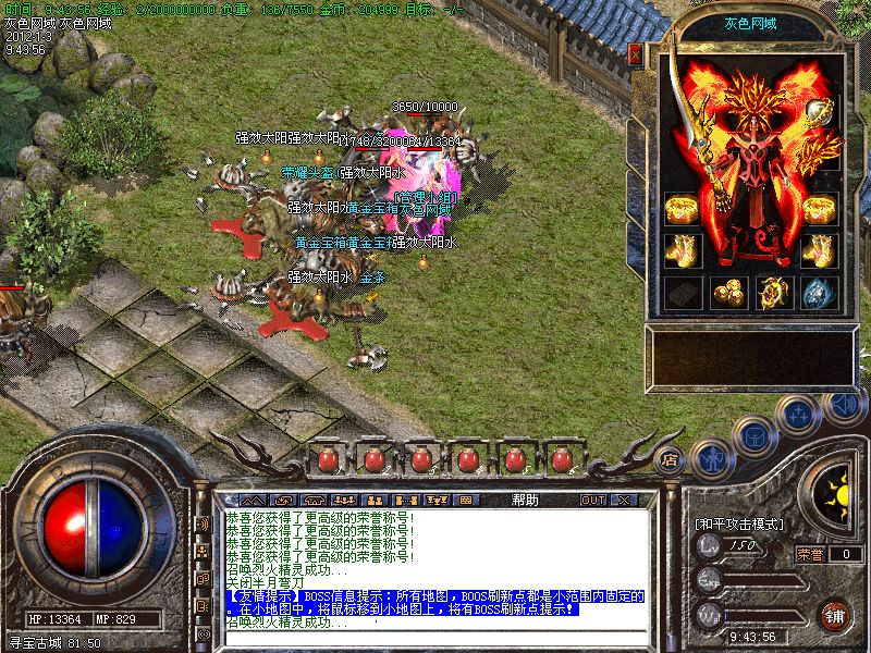 【王者天堂】每天15点.19点.0点开放.此地图任何大小怪物都可以有几率爆出雷霆和战神装备.